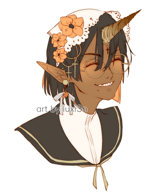He was always a bit worse than all the other demons in terms of having morality (he has none). He's committed atrocities in all areas; of every sinful nature, until he seduced and corrupted a goddess's child. The goddess, then punished him by straightening his horn and rendering him completely incapable of lying.He first found this to be incredibly troublesome; trying to curve his horn again, trying to get rid of what he called a "curse". But he was unsuccessful, and thus had to figure out how to live with it.